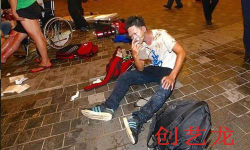 (爆炸后受傷者等待救助。)
